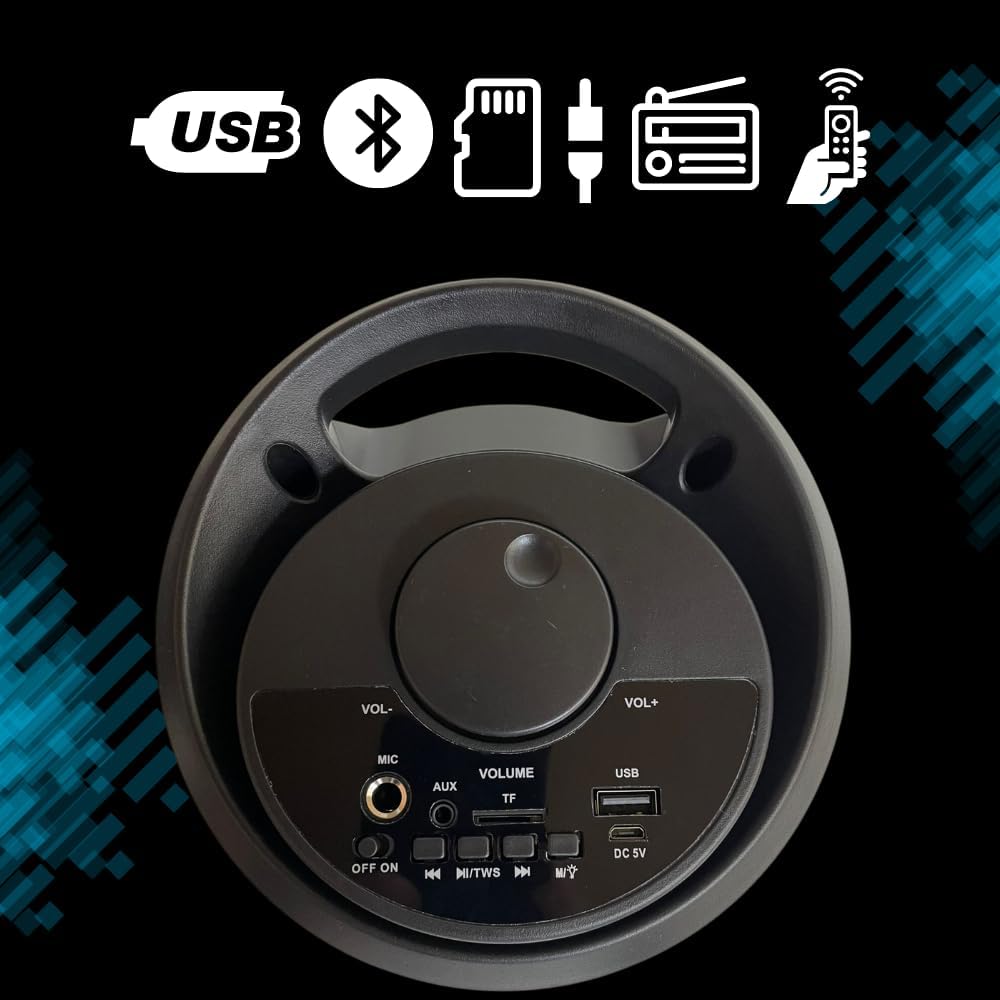 Con nuestro exclusivo altavoz de torre podrás disfrutar de tu música favorita a donde vayas. Déjate envolver por un audio más nítido. Pulsa el botón y ten el control sincronizando tu dispositivo inteligente vía bluetooth. Además, presenta entrada vía micrófono para 1, entrada auxiliar, lector de tarjeta Micro SD, conector USB, iluminación LED, batería interna recargable, y más características que volverán más fácil su uso.